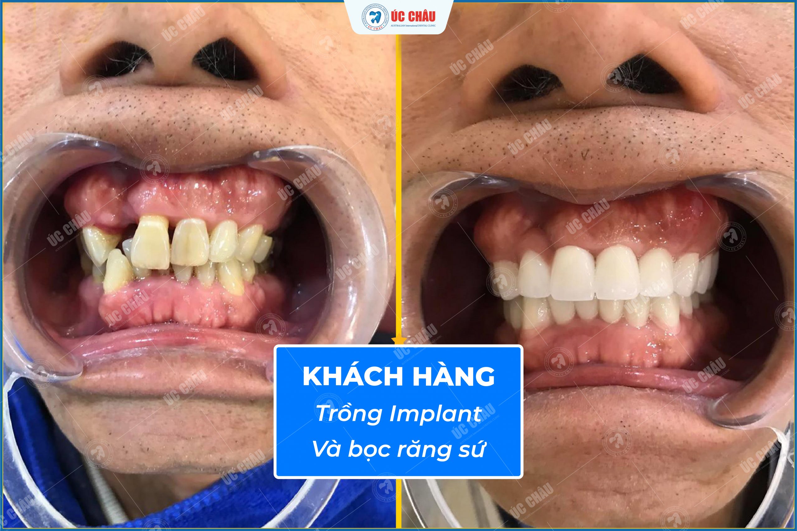 Khách hàng bọc sứ kết hợp trồng răng implant
